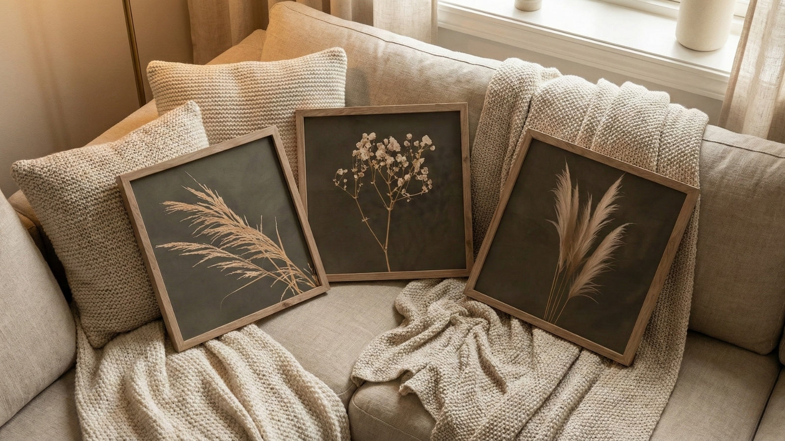 Bilder Set Pampas mit hochwertigem Holzrahmen - 3x 30x30cm